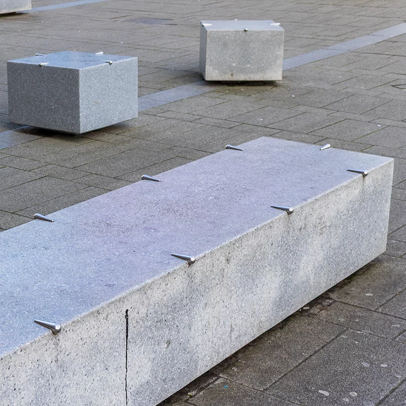 PP Construction approached Studmarc with their client’s requirement to protect the newly installed planters, seating units and walls from any anti-social behaviour, or grinding that occurs as a result of skaters in the area. They cited concerns over maintaining the infrastructure with a long-term solution whilst also ensuring the health and safety of all users that enter the location.